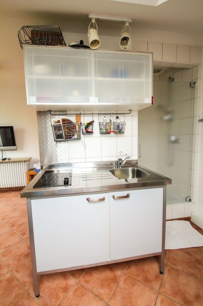 Kleine, helle und komplett eingerichtete 1-Zimmer-Ferienwohnung mit kleinem Balkon. Ausziehbettsofa, Küchenzeile, Dusche, Flur-WC. TV mit SAT-anlage. WLan.